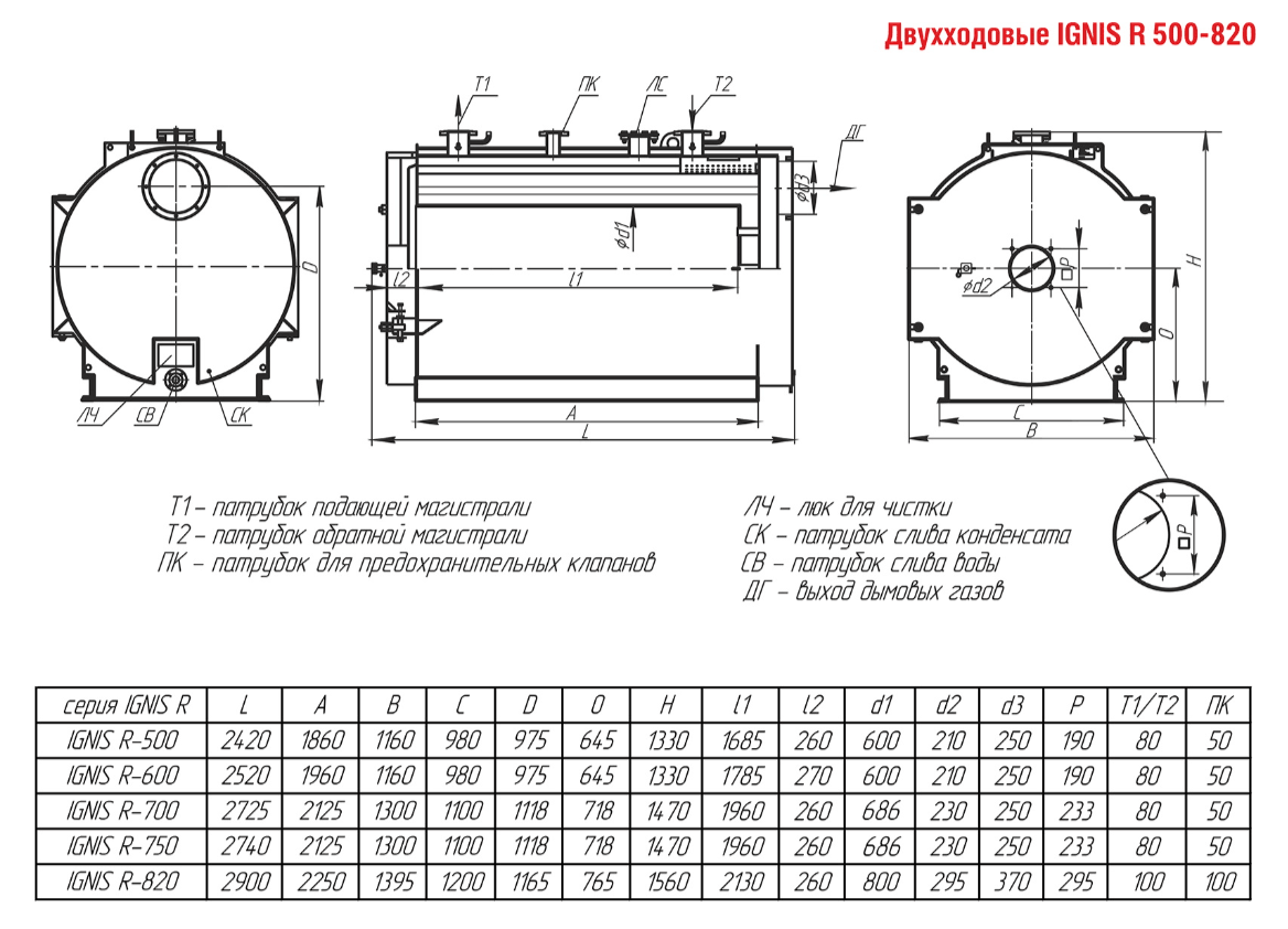 Технические характеристики водогрейного двухходового котла ARCUS IGNIS R-820